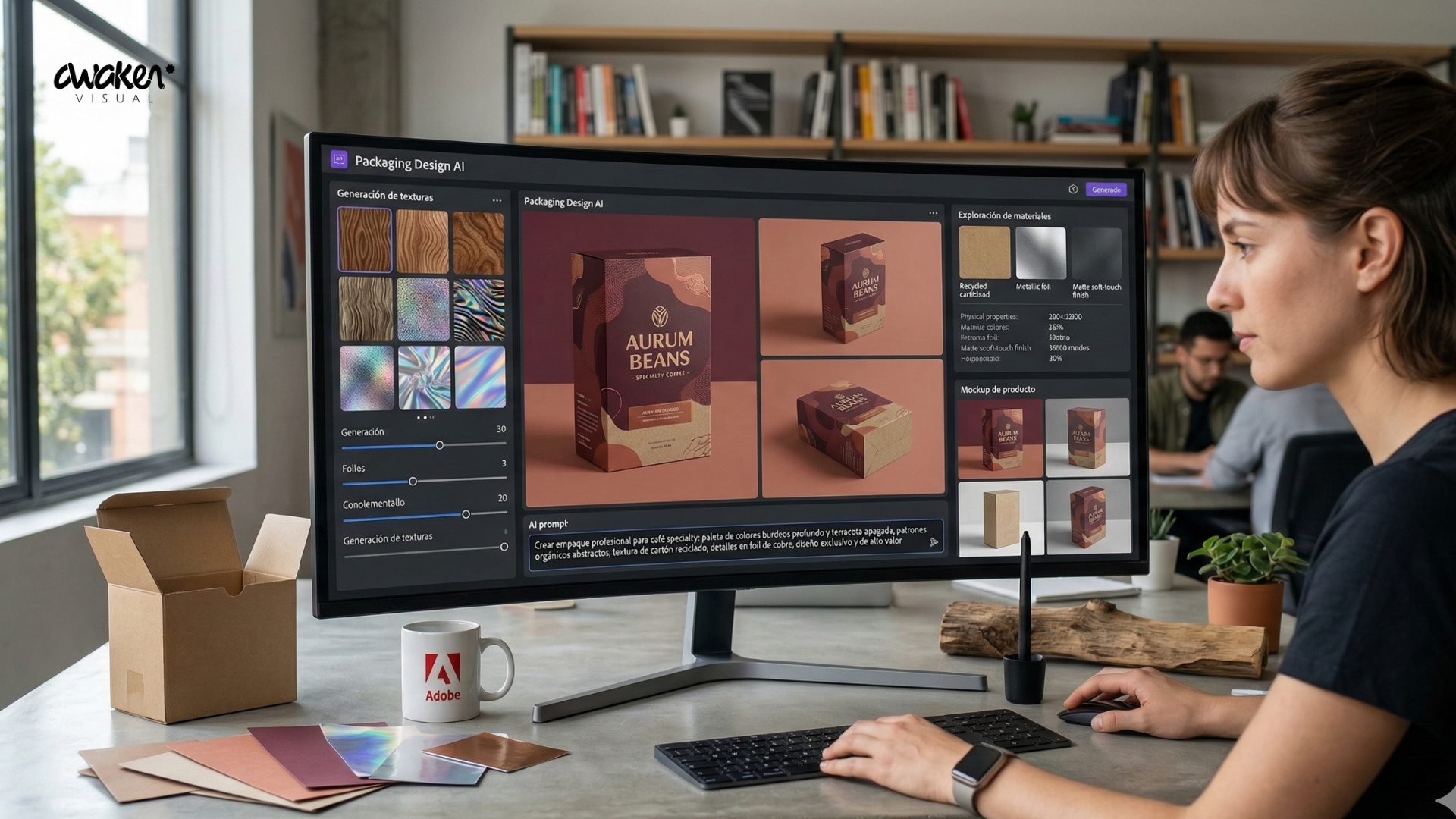 En Awaken Visual, no le pedimos a la IA que “diseñe una caja”. Usamos la tecnología para enriquecer el proceso de las siguientes maneras: