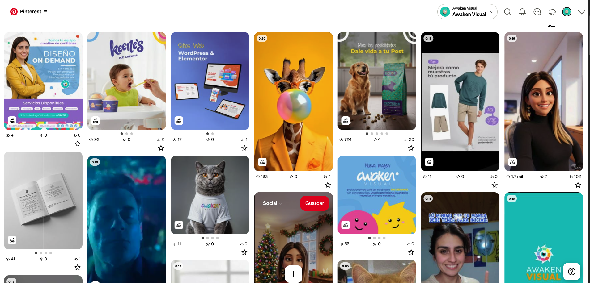 En Awaken Visual, estructuramos los Pines bajo reglas estrictas de diseño para maximizar el Click-Through Rate (CTR) o tasa de clics: